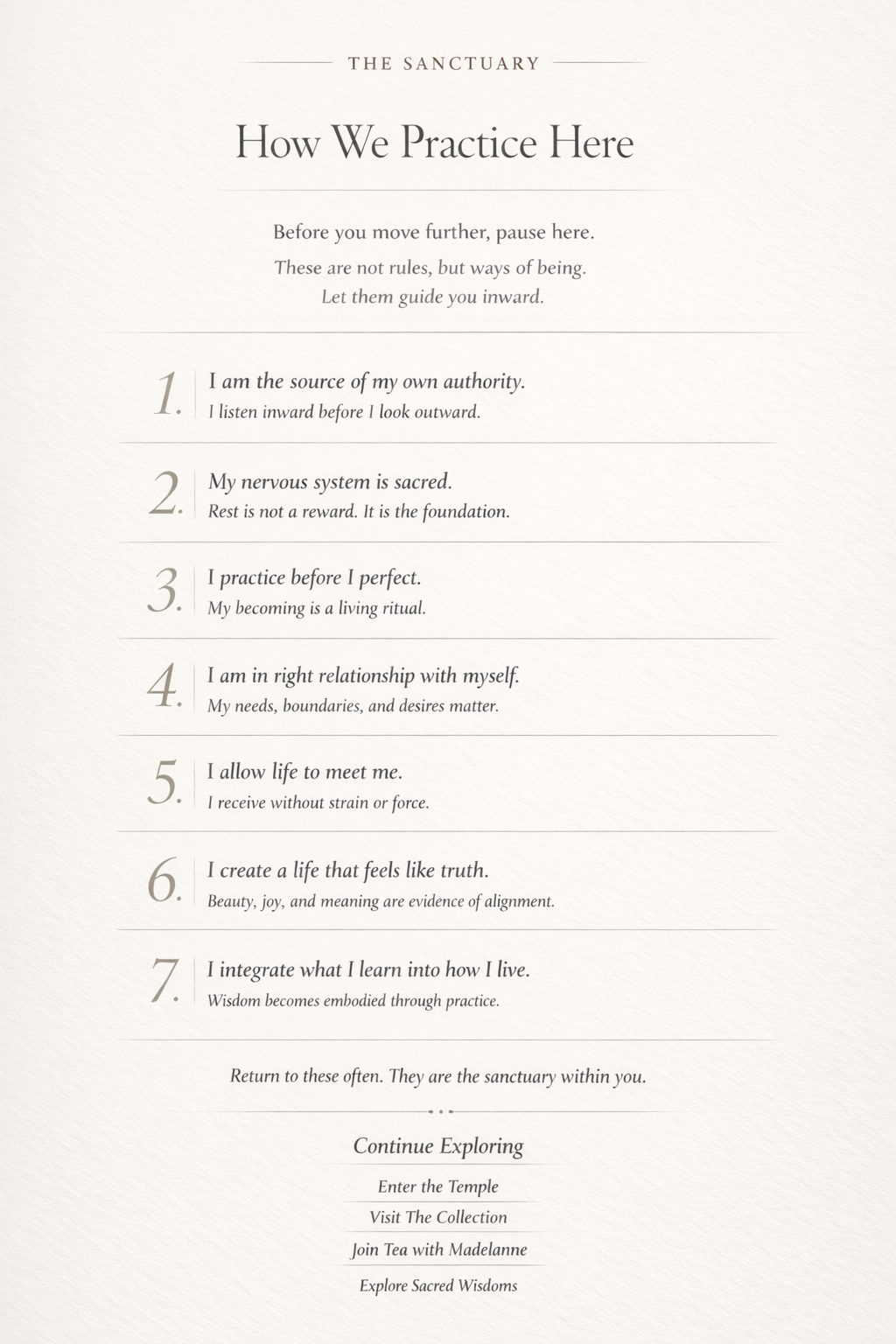 These principles are offered as a printable for your altar, journal, or bedside.
